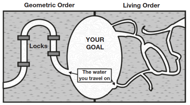 تصویر 1-1- نظام هندسی – همانند یک کانال آب – سازماندهی شده و قابل پیش بینی است. در حالی که نظام طبیعی – همانند یک رودخانه طبیعی- متلاطم و متغیر است.